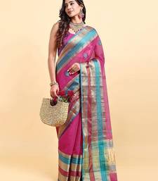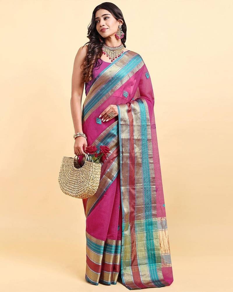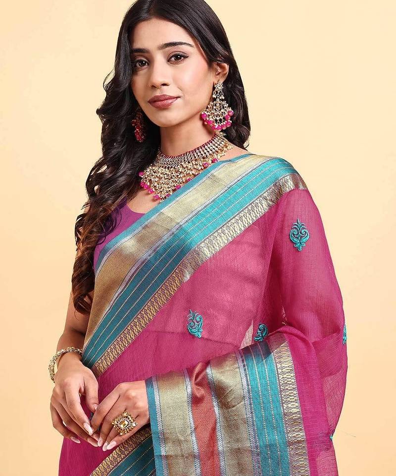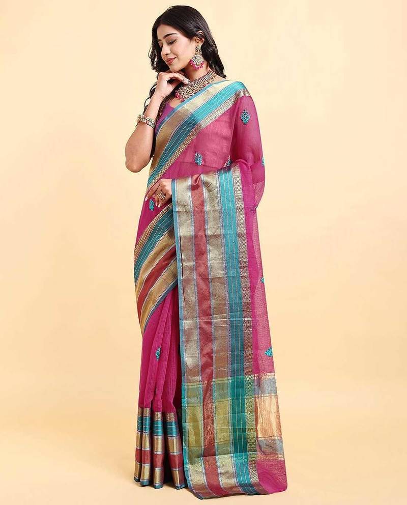 | Product Name | Elegant Pink Cotton Silk Blend Saree With Red & Green Border | |