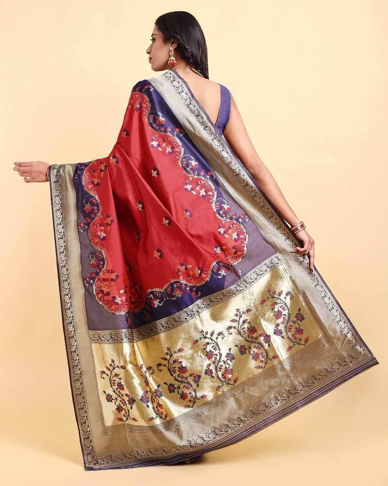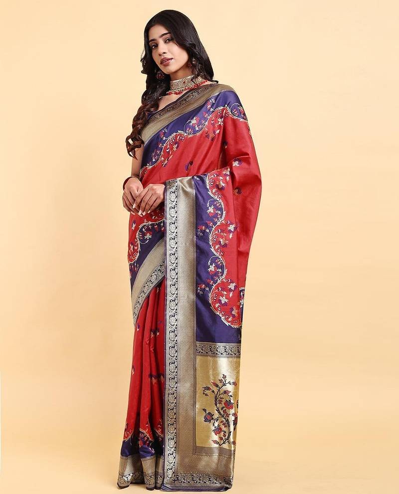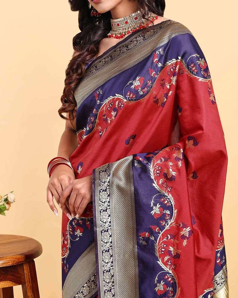 | Product Name | Red Banarasi Silk Blend Saree With Rich Floral Zari Weaving | |