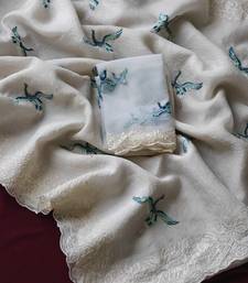 White crush fabric saree with lucknowi embraided border with butterfly embroidery