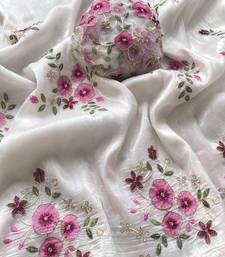Product Name | White Crushed Saree With Beautiful Flower Embroidery On Sarees With Hand Work | |