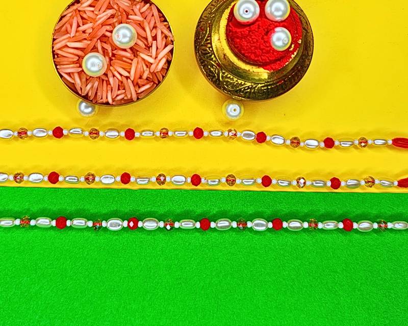 | Product Description | Celebrate The Eternal Bond Of Love With This Premium Designer Set Of Three Rakhi For Brother, Thoughtfully Handcrafted Using High Quality Cotton Thread, Adorned With American Diamond (Ad) Stones, Sparkling Zircons, Traditional Beads, And Intricate Meena Work. This Rakhi Perfectly Blends Ethnic Charm With Modern Elegance, Making It A Meaningful Gift For Raksha Bandhan. |