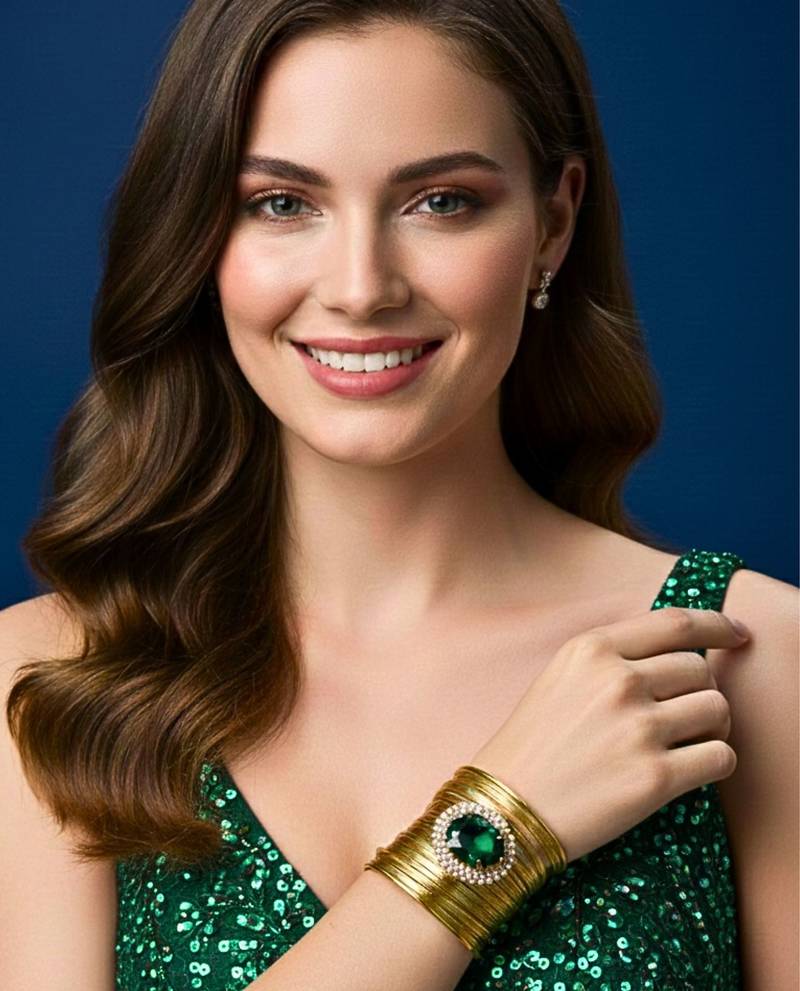 | Product Name | Green Crystal Cz Ad Ston Fancy Western Cuff Bangle Bracelet | |