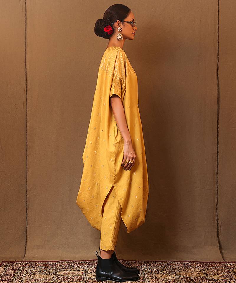 Yellow printed cotton long kurta