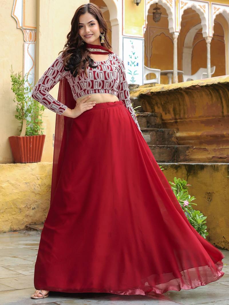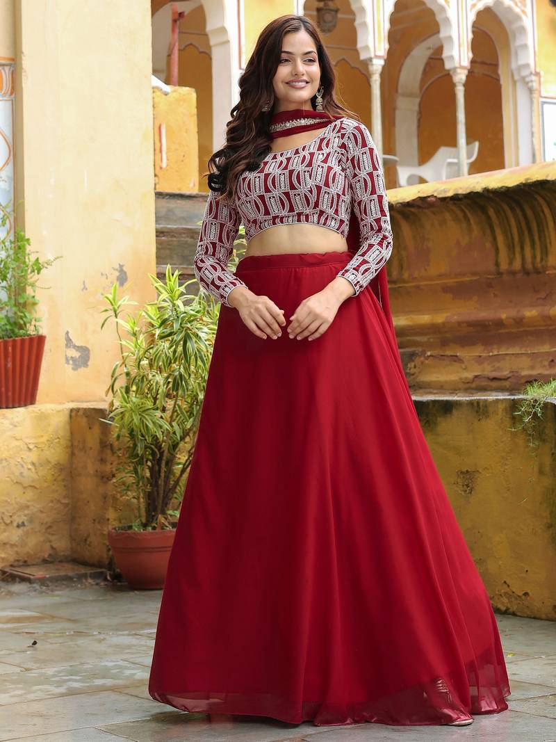 | Product Description | Look Stunning In Our Beautiful Red Georgette Function Wear Lehenga Paired With An Embroidered Choli, Perfect For Traditional Celebrations And Parties. The Lehenga Features A Vibrant Red Georgette Fabric With A Simple Design And A Generous 4.50 Meter Flair For Added Elegance.