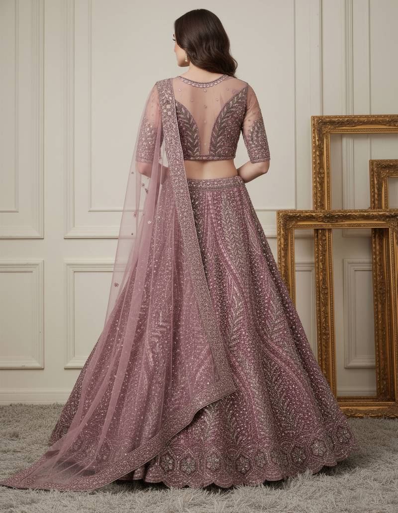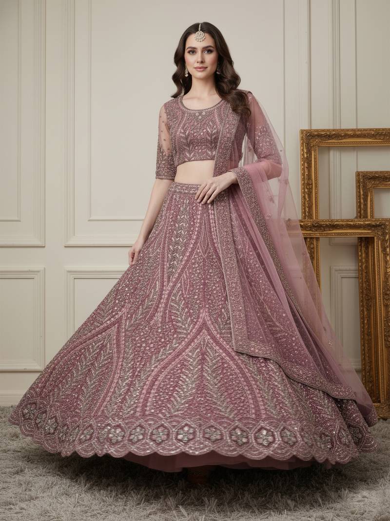 | Product Name | Catching Pink Dori, Zari, Sequence, Thread Embroidered And Motif Work Heavy Net Wedding Designer Lehenga Choli For Women | |