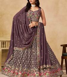 Delightful pearly purple georgette sequins and thread embroidery wedding lehenga for women