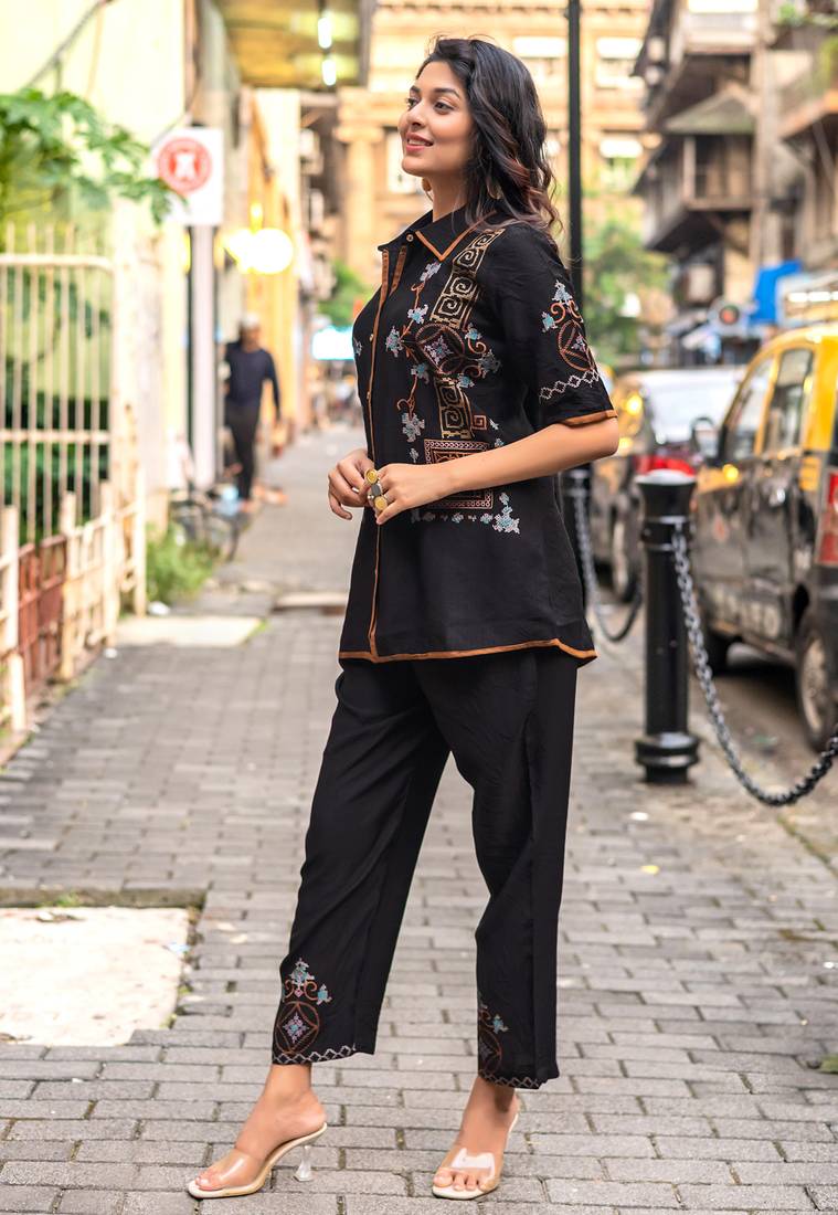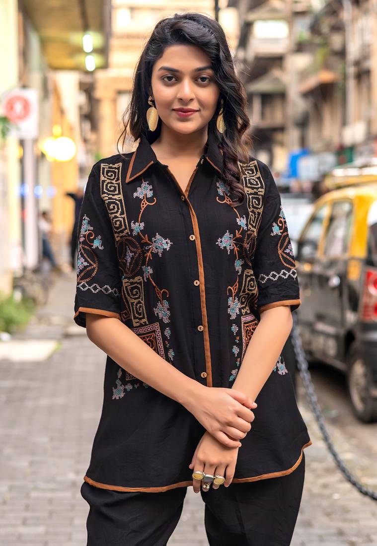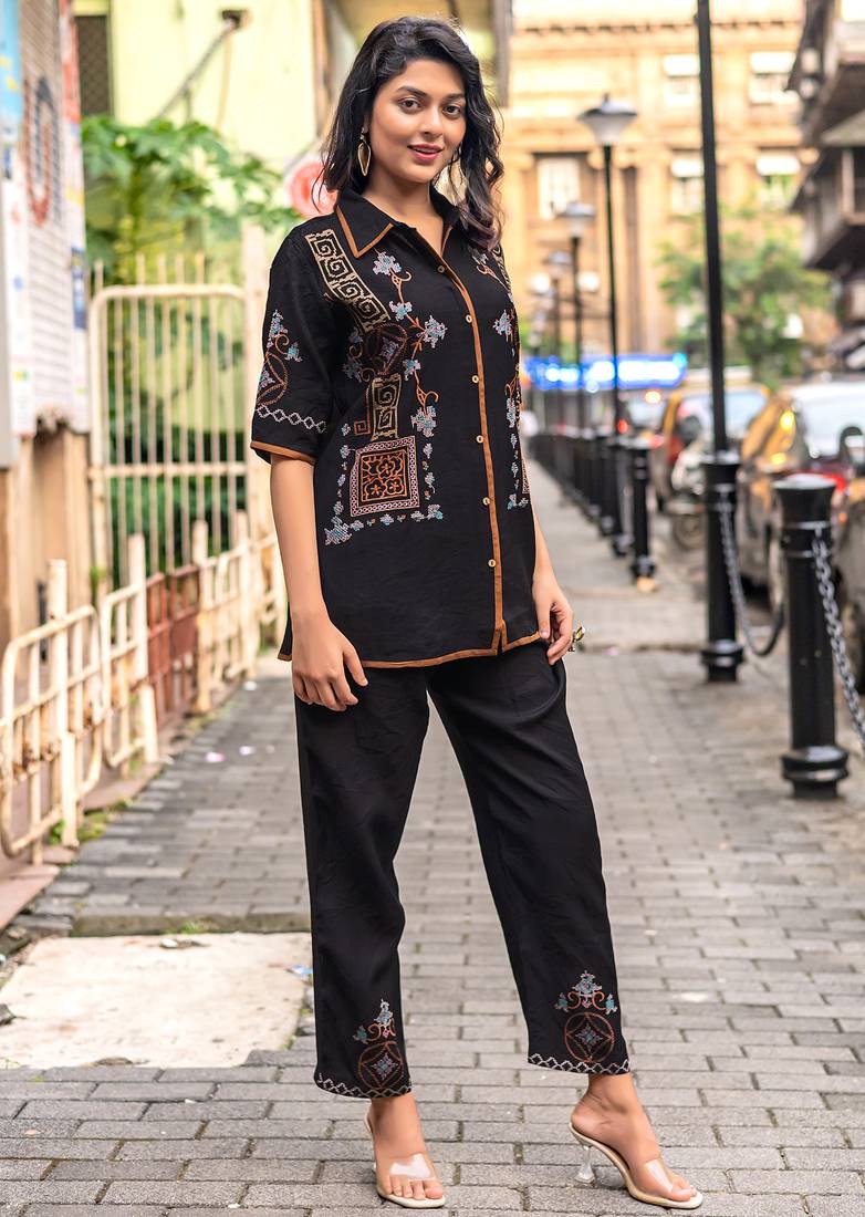 Product Name Embroidered Shirt With Trousers