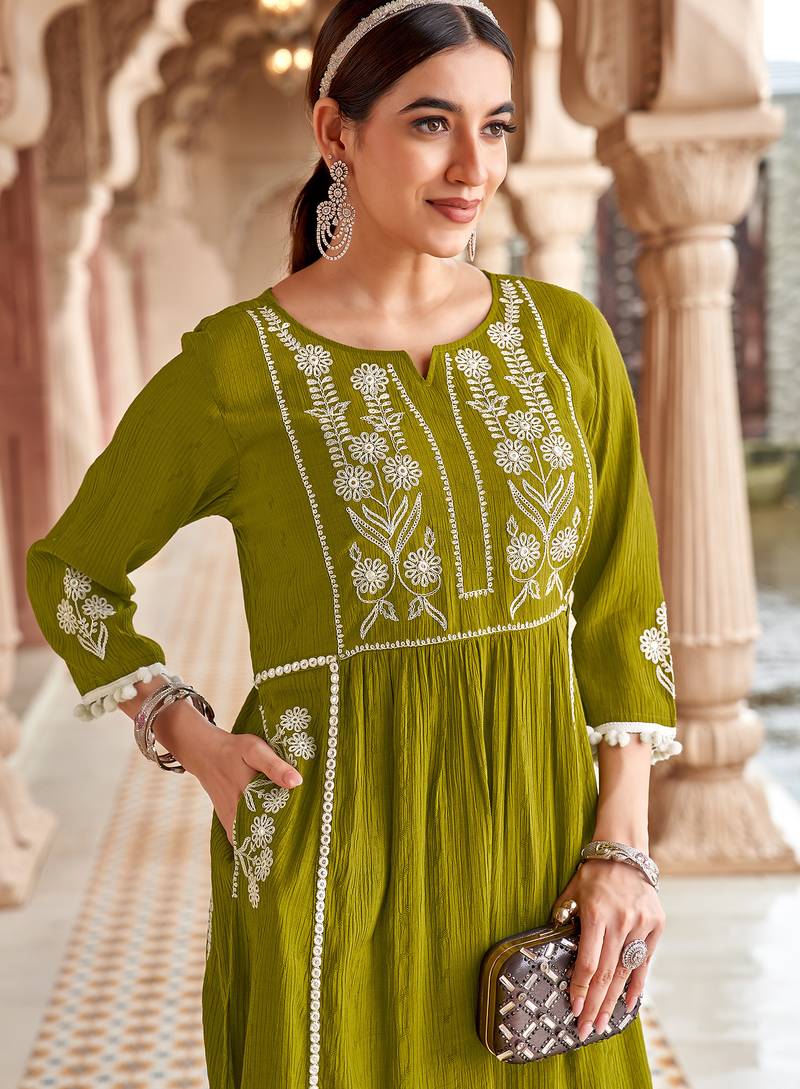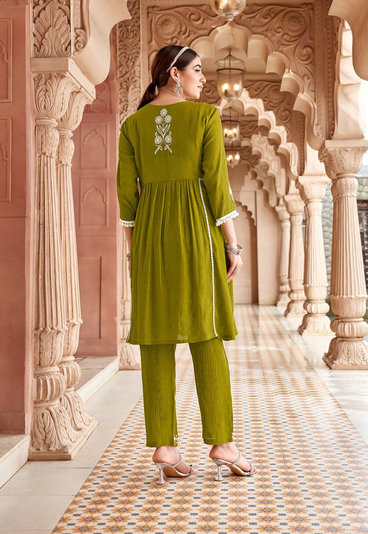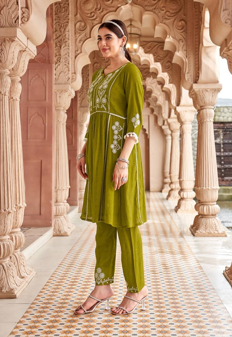 | Product Name | Ethnic Motifs Embroidered Thread Work Viscos Bulti Kurta With Trouser | |