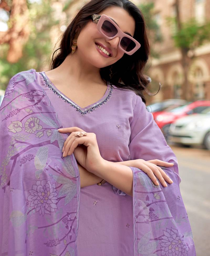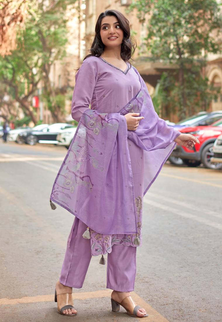 | • | Dupatta | : | Color- Purple / Fabric- Chanderi |