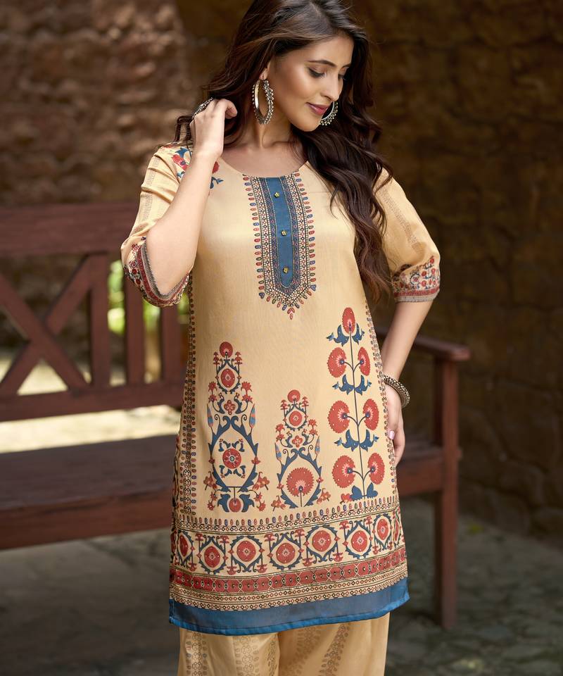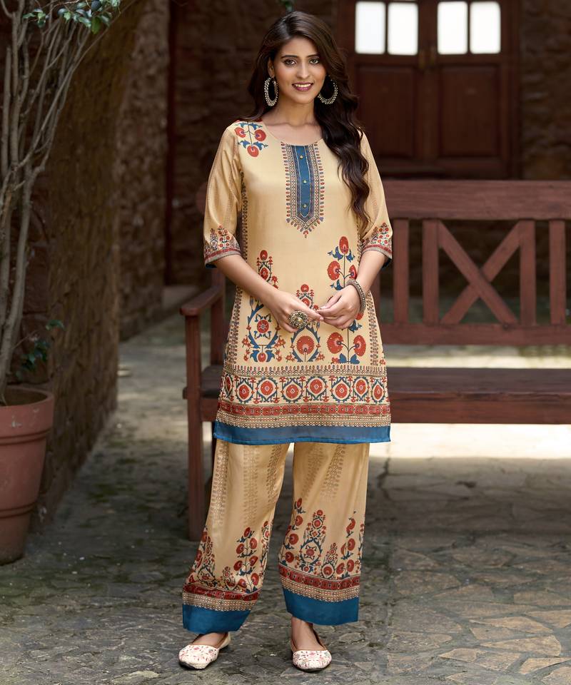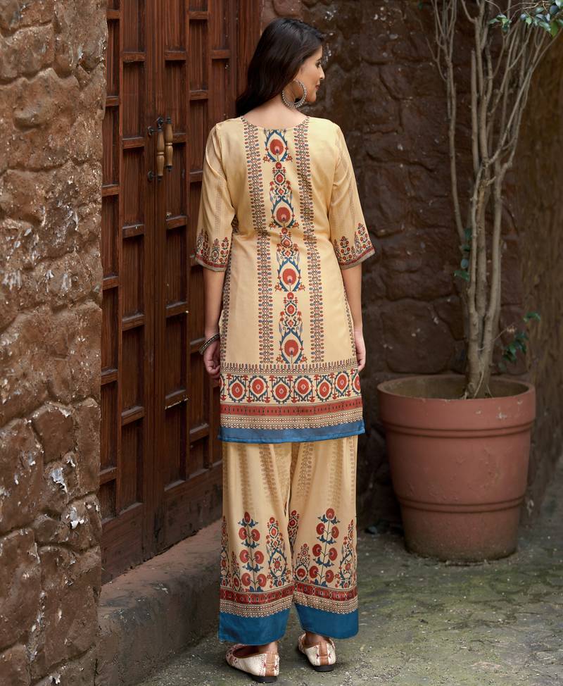 Product Description | Elegant Beige Chinon Chiffon Co Ord Set Showcasing A Geometric Straight Tunic Adorned With Beadwork. Paired With A Fully Elasticated Printed Palazzo, It Combines Style With Ease And Comfort. Perfect For Festive Events, Parties, And Celebrations, This Sophisticated Ensemble Adds A Touch Of Modern Charm And Timeless Grace To Your Occasion Wear Collection. |