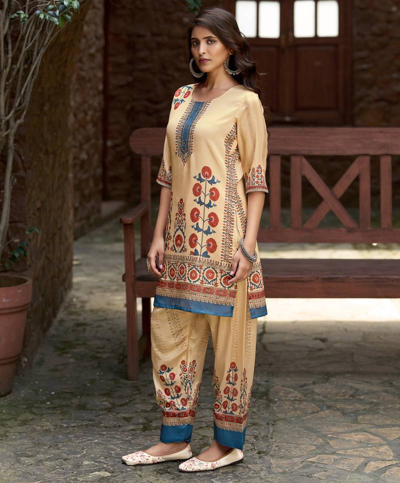 Product Name | Beige Chinon Chiffon Geometric Printed Embellished Festive & Party Co Ord Set | |