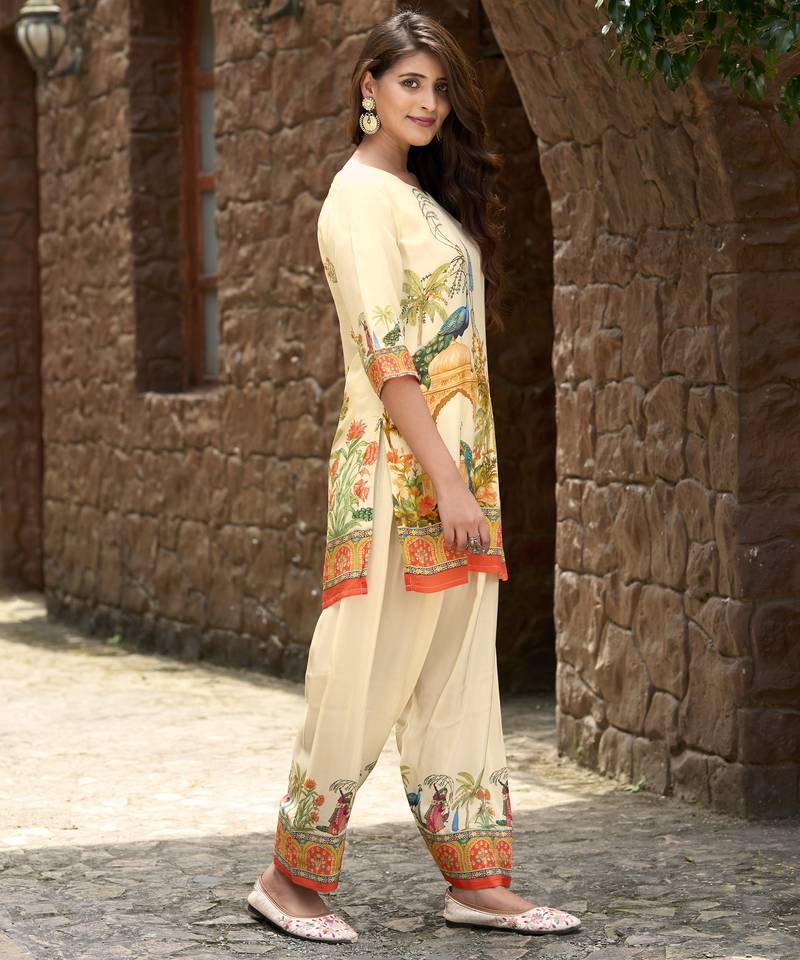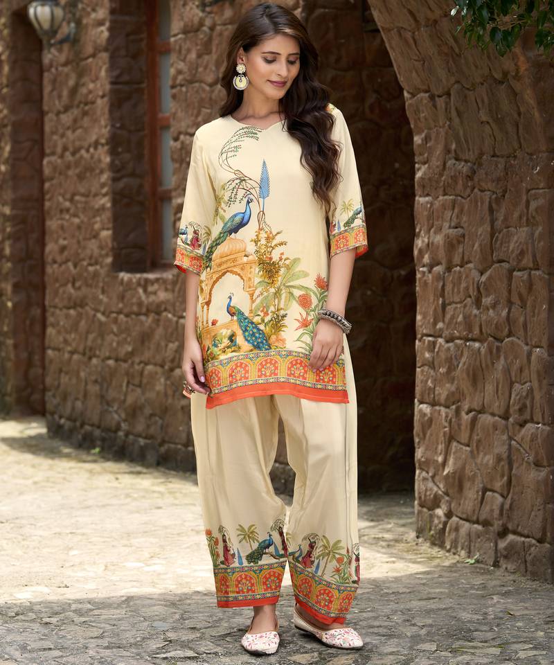 Product Name | Beige Pure Crepe Animal Printed Embellished Festive & Party Co Ord Set | |
