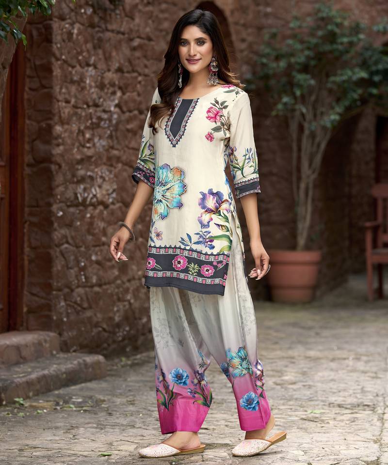 Product Description | Sophisticated Beige Pure Crepe Co Ord Set Featuring A Floral Straight Tunic Highlighted With Delicate Beadwork. Paired With A Fully Elasticated Printed Palazzo, It Offers Comfort And Elegance In Perfect Balance. Ideal For Festive Celebrations, Parties, And Special Occasions, This Graceful Ensemble Adds Timeless Charm And Versatile Style To Your Ethnic Wardrobe. |