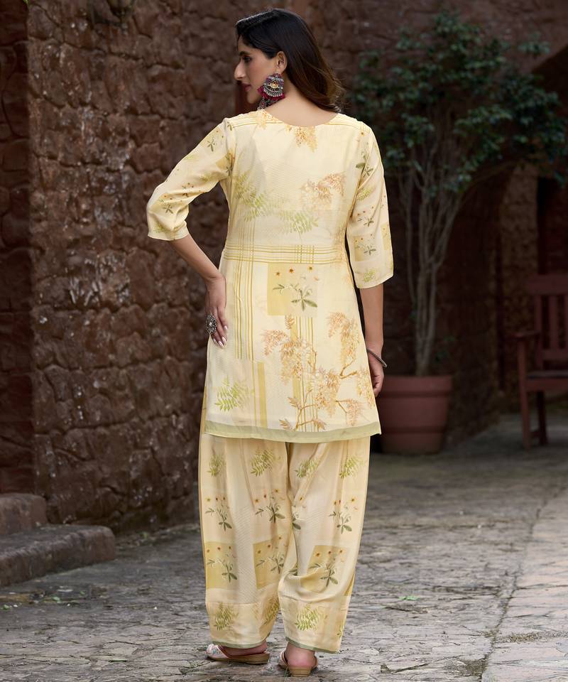 Product Description | Elegant Beige Pure Crepe Co Ord Set Featuring A Floral Straight Tunic Beautifully Detailed With Beadwork. Teamed With A Fully Elasticated Printed Palazzo, It Offers Comfort With A Refined Touch. Perfect For Festive Gatherings, Parties, And Special Occasions, This Graceful Ensemble Blends Subtle Charm With Timeless Sophistication For A Versatile And Stylish Look. |
