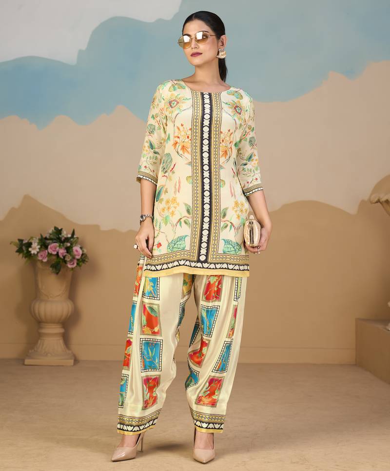 Product Name | Beige Pure Crepe Floral Printed Embellished Festive & Party Co Ord Set | |