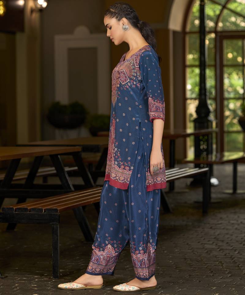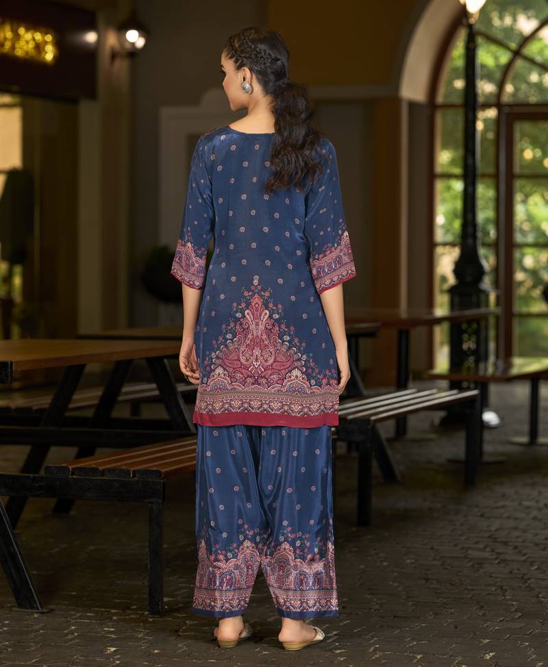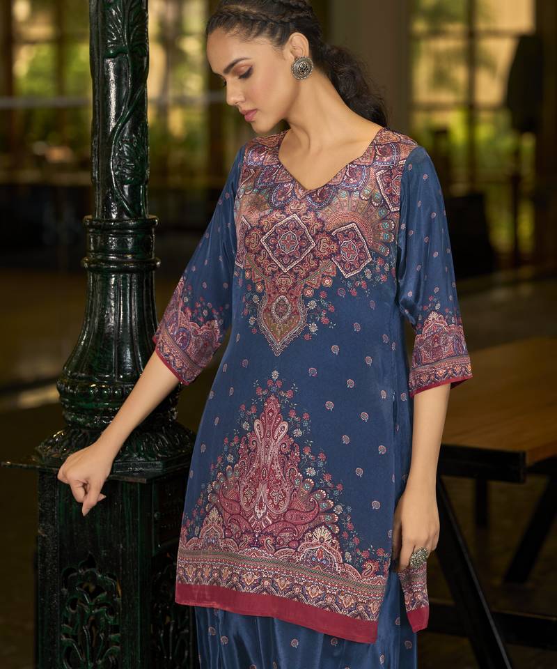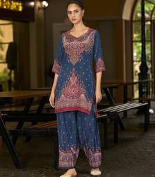 Product Name Blue Pure Crepe Abstract Print Festive & Party Co Ord Set