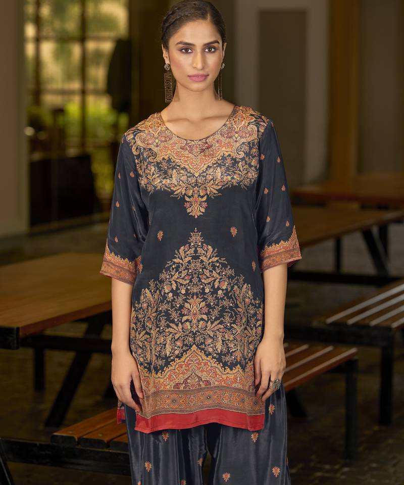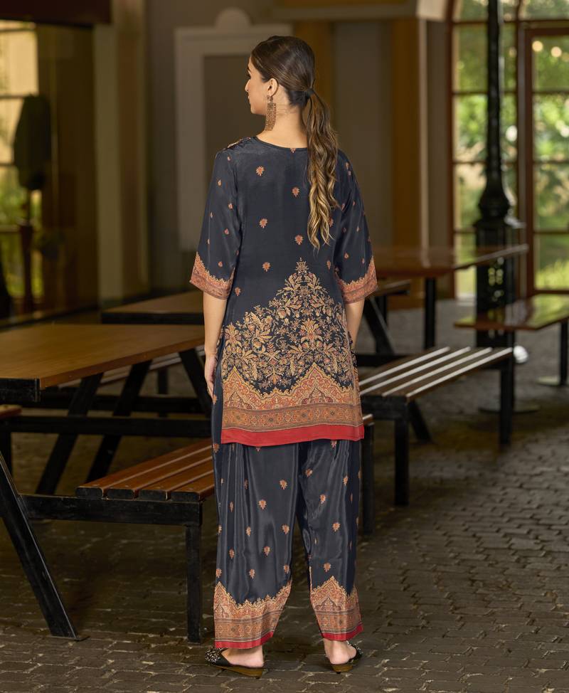 Product Name | Blue Pure Crepe Abstract Print Festive & Party Co Ord Set | |
