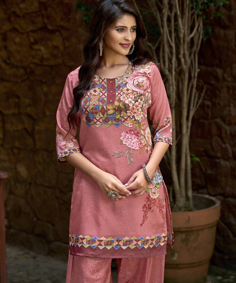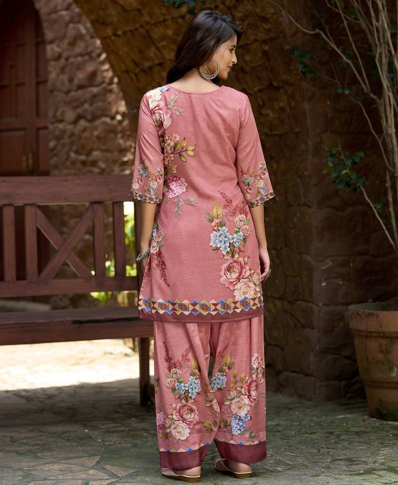 Product Description | Graceful Mauve Chinon Chiffon Co Ord Set Featuring A Floral Straight Tunic Enhanced With Delicate Beadwork. Paired With A Fully Elasticated Printed Palazzo, It Ensures Effortless Comfort And Refined Style. Perfect For Festive Gatherings, Parties, And Special Occasions, This Elegant Ensemble Blends Soft Charm With Timeless Sophistication For A Chic And Versatile Look. |