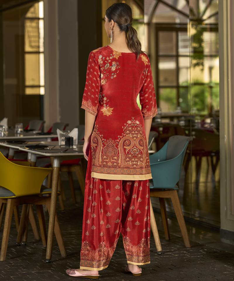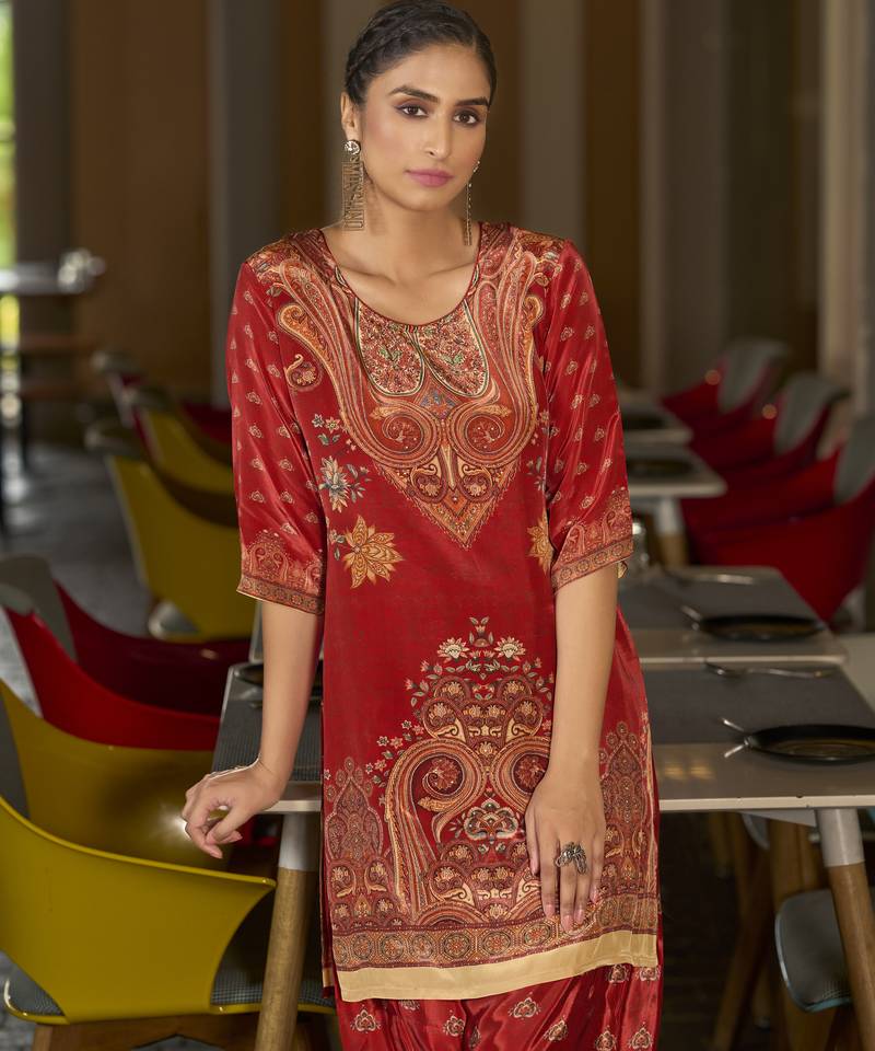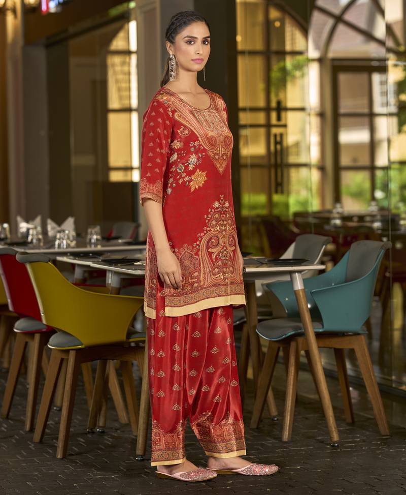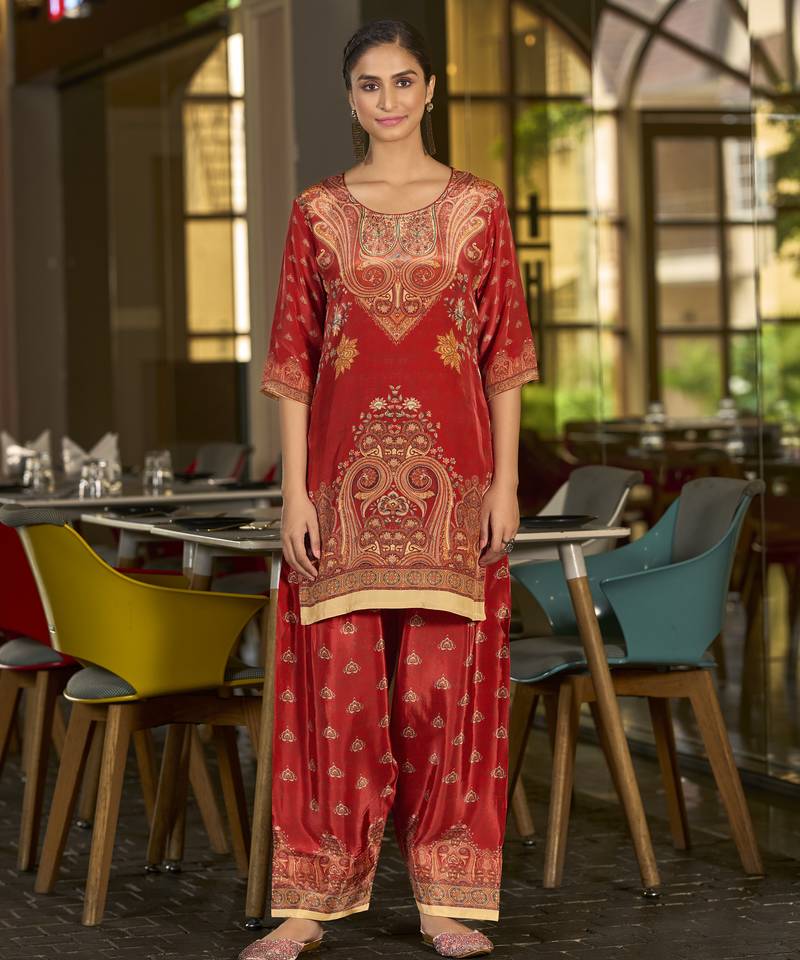 Product Name | Red Pure Crepe Abstract Print Festive & Party Co Ord Set | |