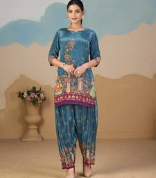 Product Name | Teal Blue Pure Crepe Floral Printed Embellished Festive & Party Co Ord Set | |
