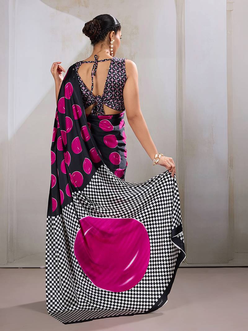 | Product Name | Black & Hot Pink Satin Printed Saree | |