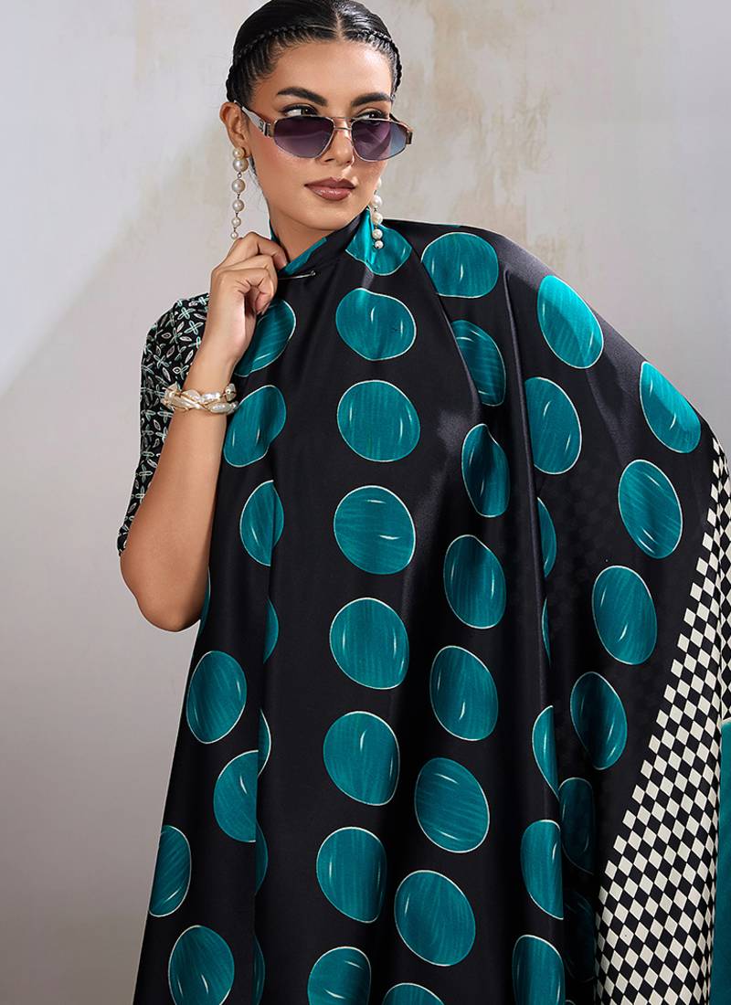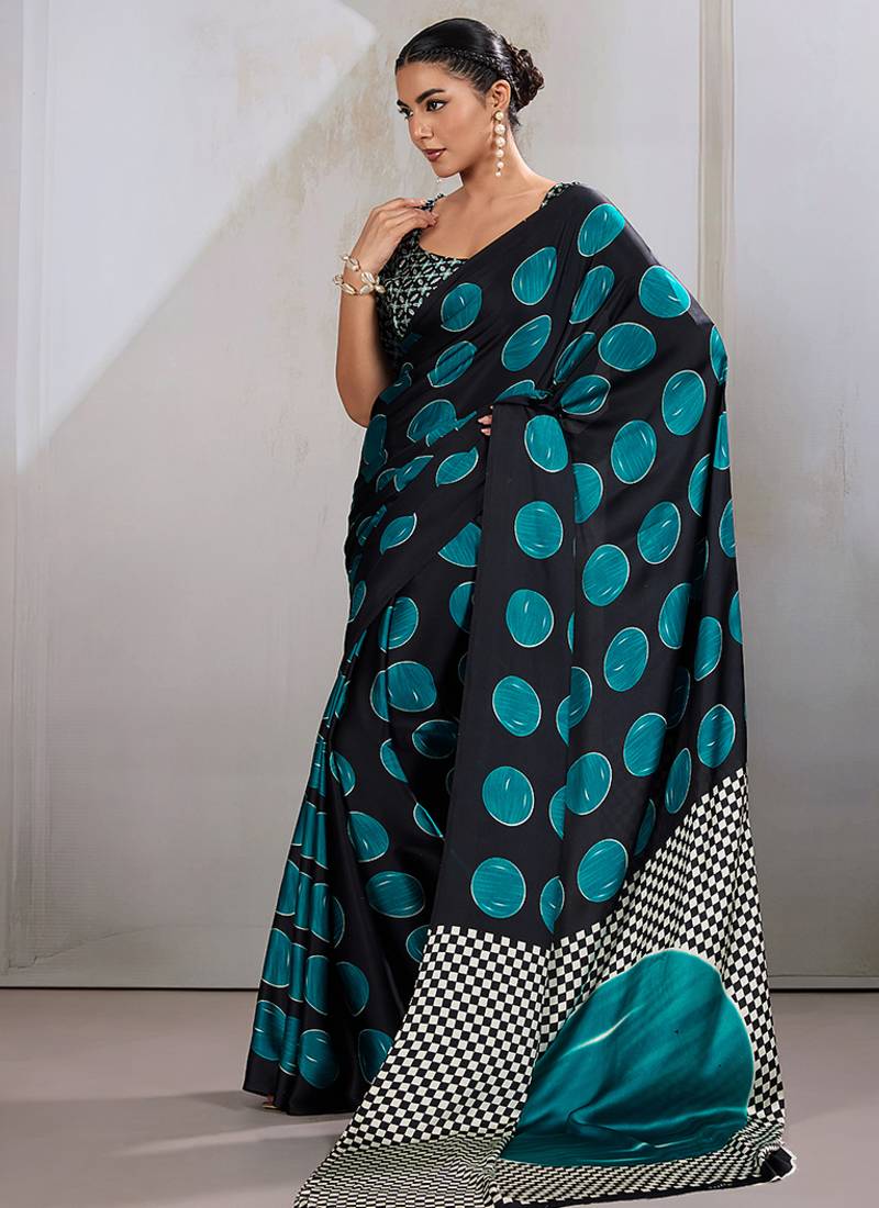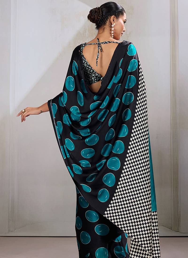 | Product Description | For Something Understated But Rooted In Culture, This Black & Teal Satin Saree Makes A Thoughtful Pick. Printed Using Time Honored Ajrakh Hand Block Techniques. Awarded As The Most Trusted Brand, We're Delivering Styles You Love, Just As Promised. Comes With Unstiched Blouse. (Slight Variation In Color, Fabric & Work Is Possible. Model Images Are Only Representative.) |