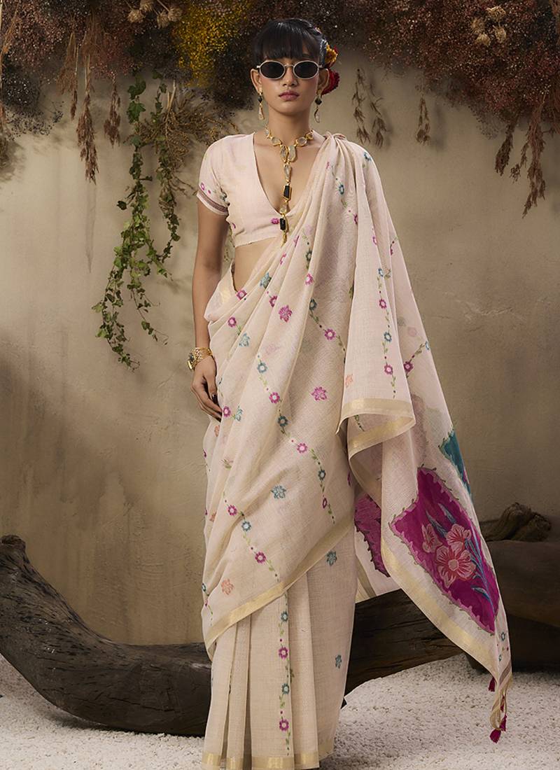 | Product Name | Cotton Blend Woven Cream Saree | |