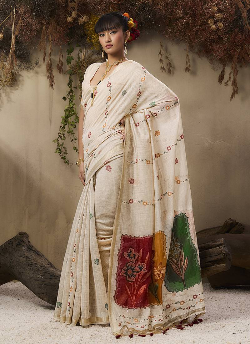| Product Name | Cotton Blend Woven Cream Saree | |