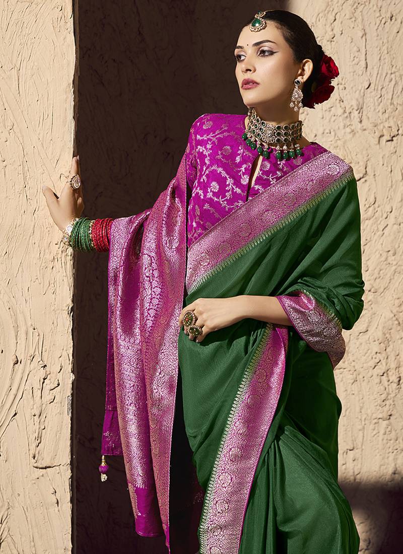 | Product Description | This Dark Green Faux Crepe And Georgette Classic Saree Is Accenting The Interesting Feeling. Beautified With Weaving Work All Synchronized Effectively With The Pattern And Style And Design Of The Dress. Comes With Unstiched Blouse. (Slight Variation In Color, Fabric & Work Is Possible. Model Images Are Only Representative.) |