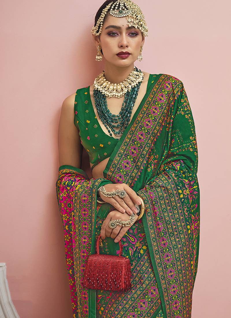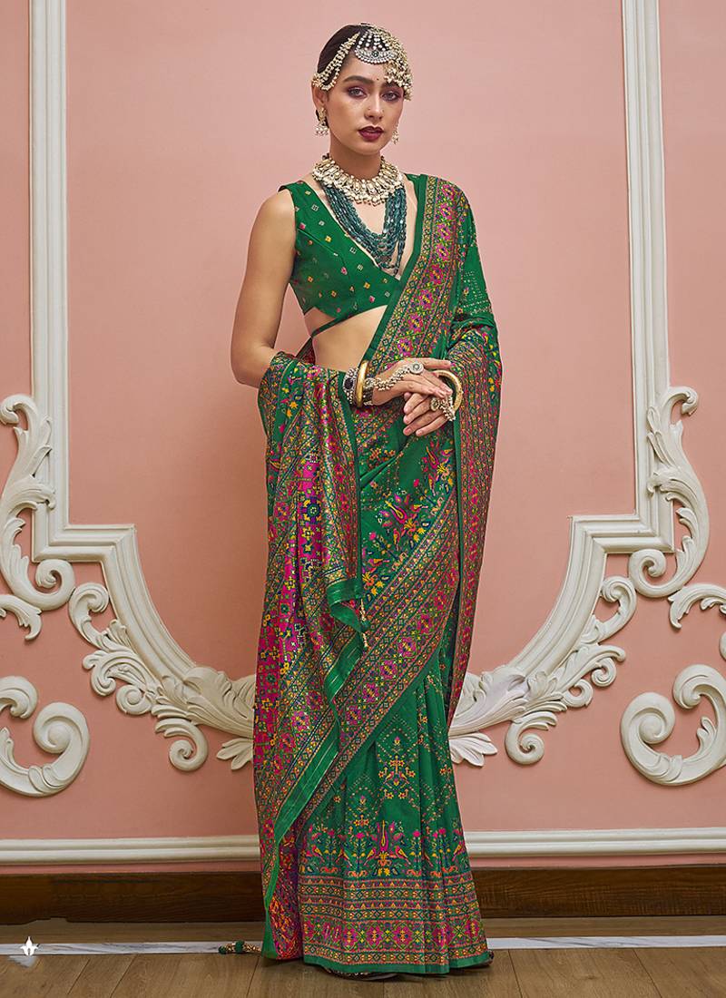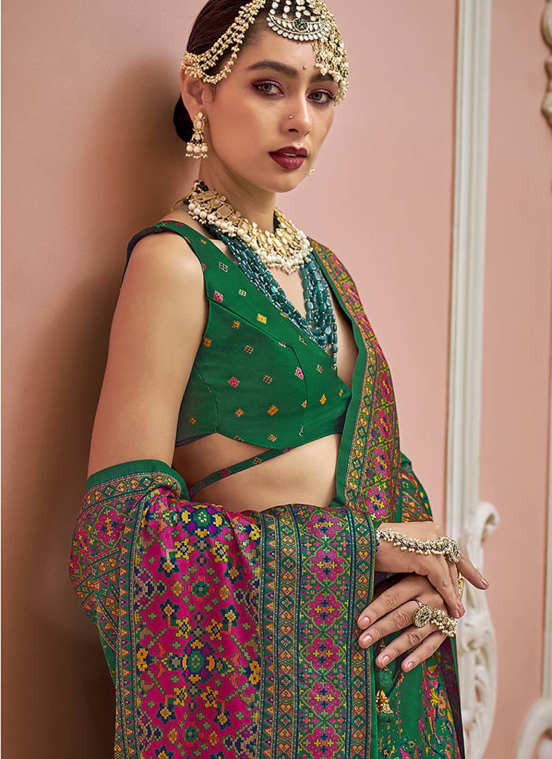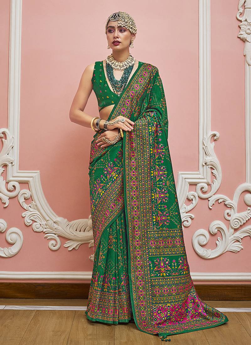 Green faux banarasi art silk traditional saree with meenakari and weaving work