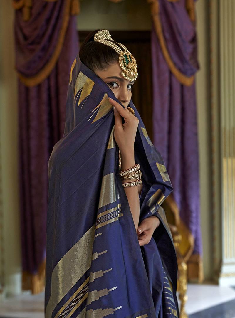 This Season Your Look Gets Better Definition With Just A Little Attention To Detail. Get The Simplicity And Grace With This Navy Blue Silk Blend Classic Saree. It Has Been Beautifully Designed With Weaving Work. Comes With Matching Blouse. (Slight Variation In Color, Fabric & Work Is Possible. Model Images Are Only Representative.)