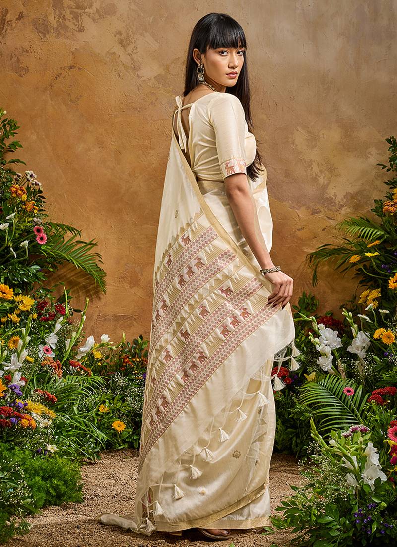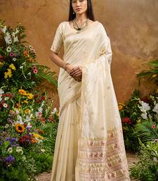 Off white tussar art silk woven work saree