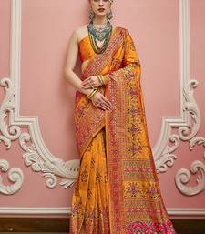 Orange faux banarasi art silk traditional saree with meenakari and weaving work