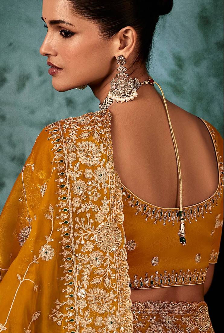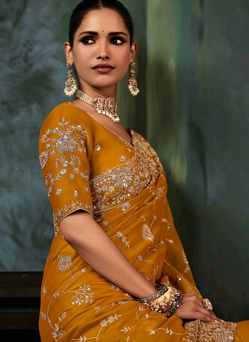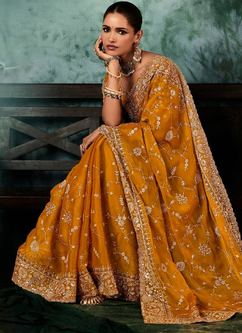 | Product Name | Orange Wear Fabric Embroidery Bridal Reception Festival Wedding Wear Heavy Border Saree | |