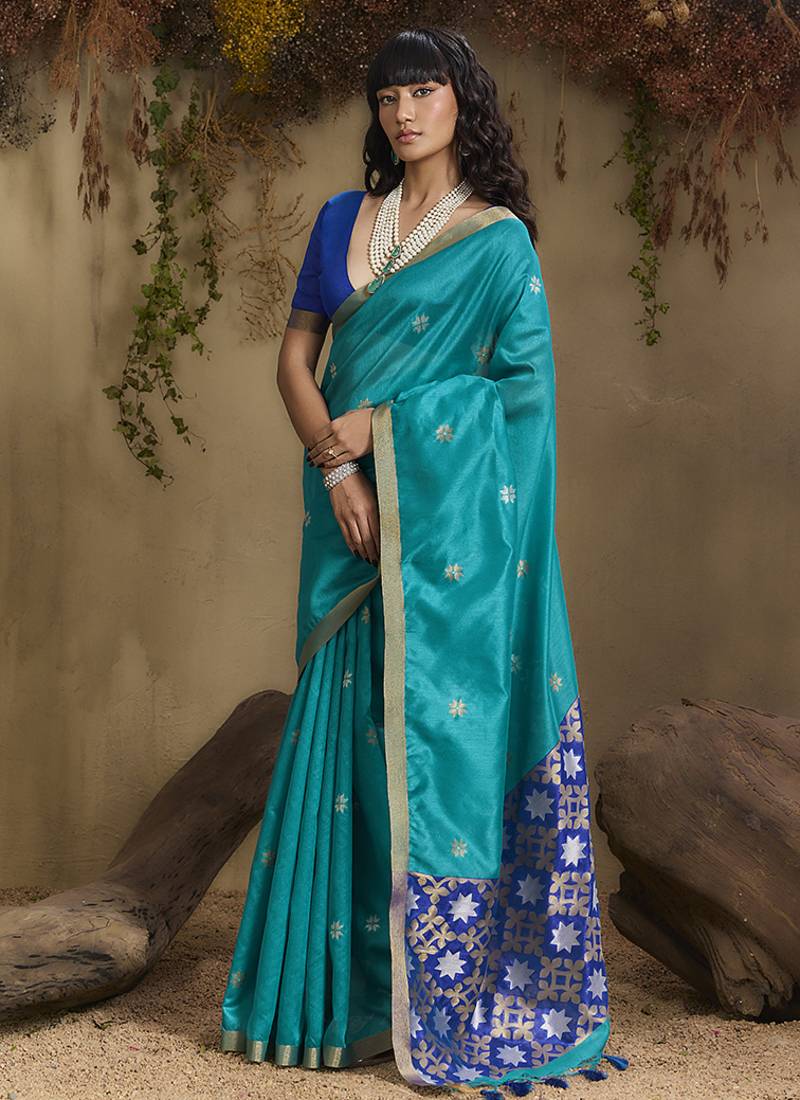 | Product Name | Tussar Art Silk Woven Work Saree In Aqua Blue | |