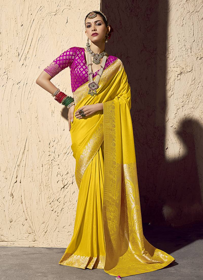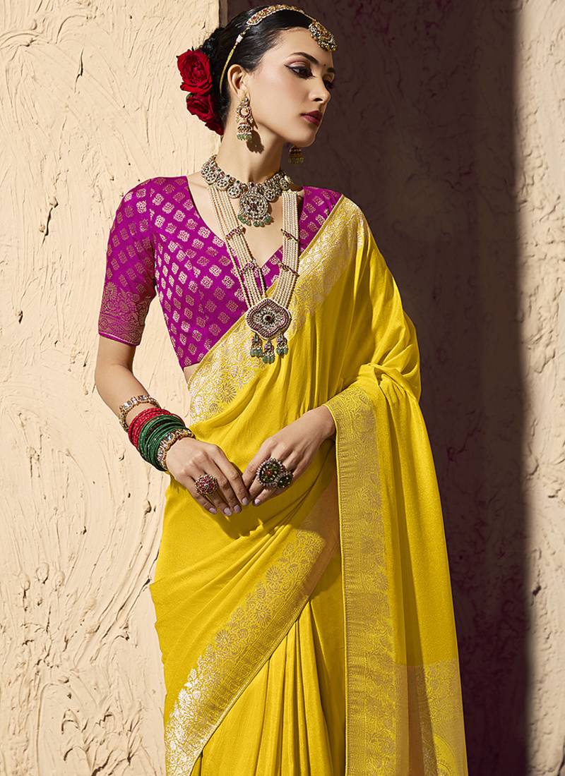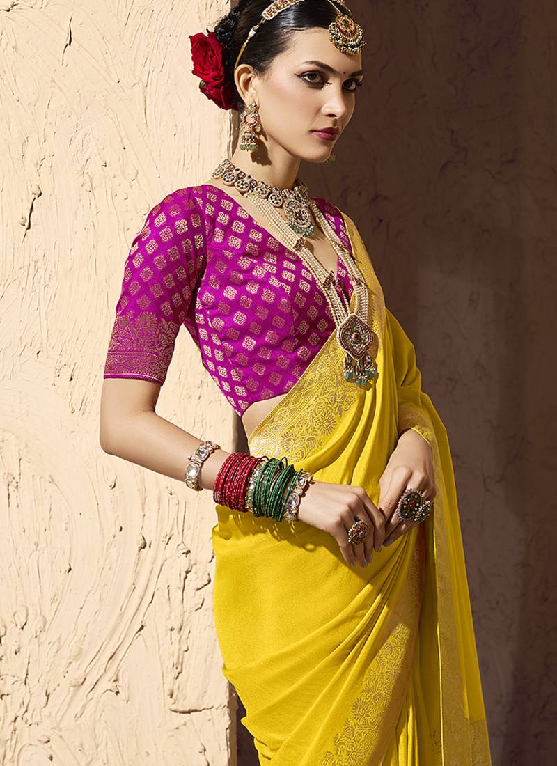 | Product Name | Yellow Faux Crepe Georgette Zari Weaving Work Saree | |