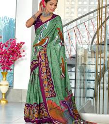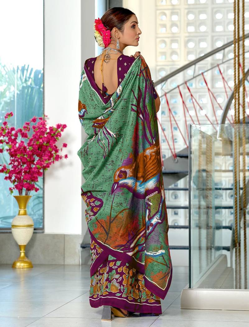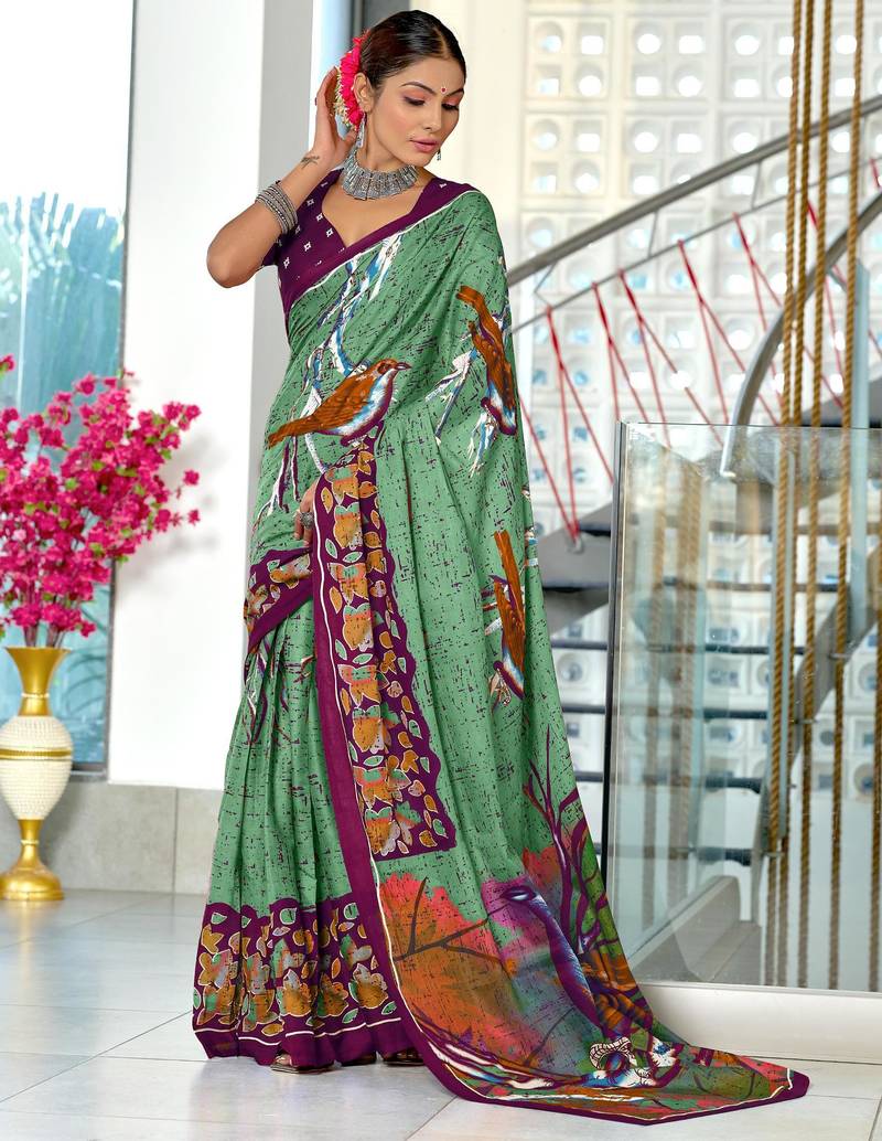 Product Description | Green Mulmul Cotton Printed Fancy Saree With Blouse |