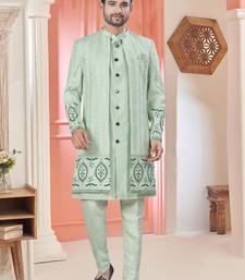 | Product Name | Pista Art Silk Embroidery Kurta Pyjama With Sequence Work Long Jacket Indo Western For Mens Wear | |
