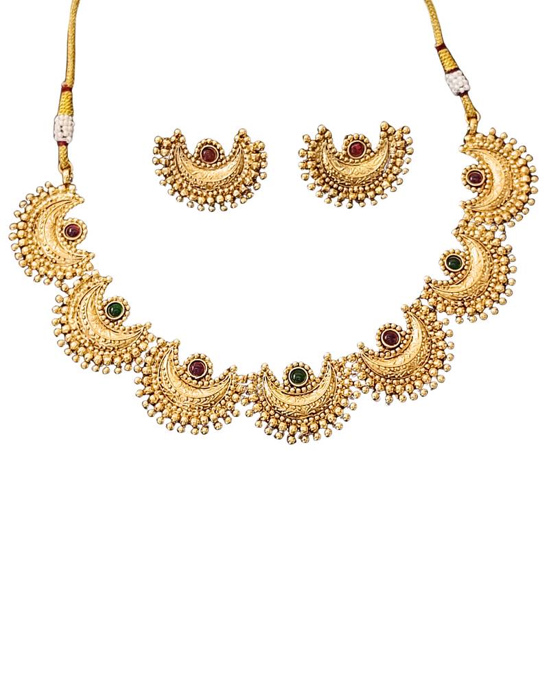| Product Name | Graceful Gold Plated Crescent Necklace Set With Multicolor Stones – Exquisite For Weddings And Party Wear | |