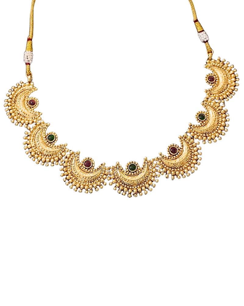 | Product Description | Adorn Yourself With This Elegant Gold Plated Necklace Set Featuring Crescent Motifs And Multicolor Stones. Perfect For Adding Royal Charm To Festive Or Wedding Outfits. *Beautiful Crescent Pattern With Intricate Detailing