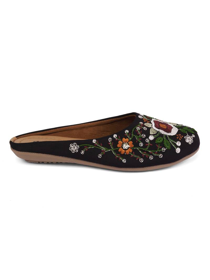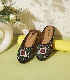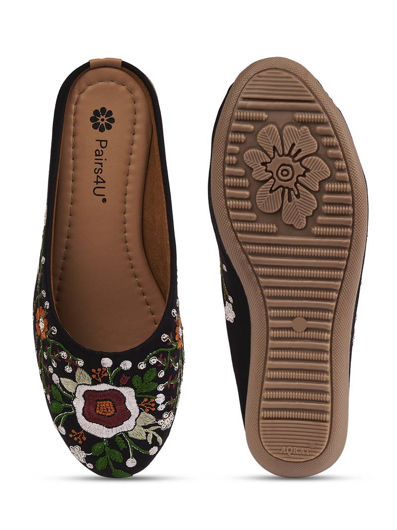 Women's black ethnic embroidered slip-on mojari mules | traditional juttis for casual & festive wear