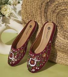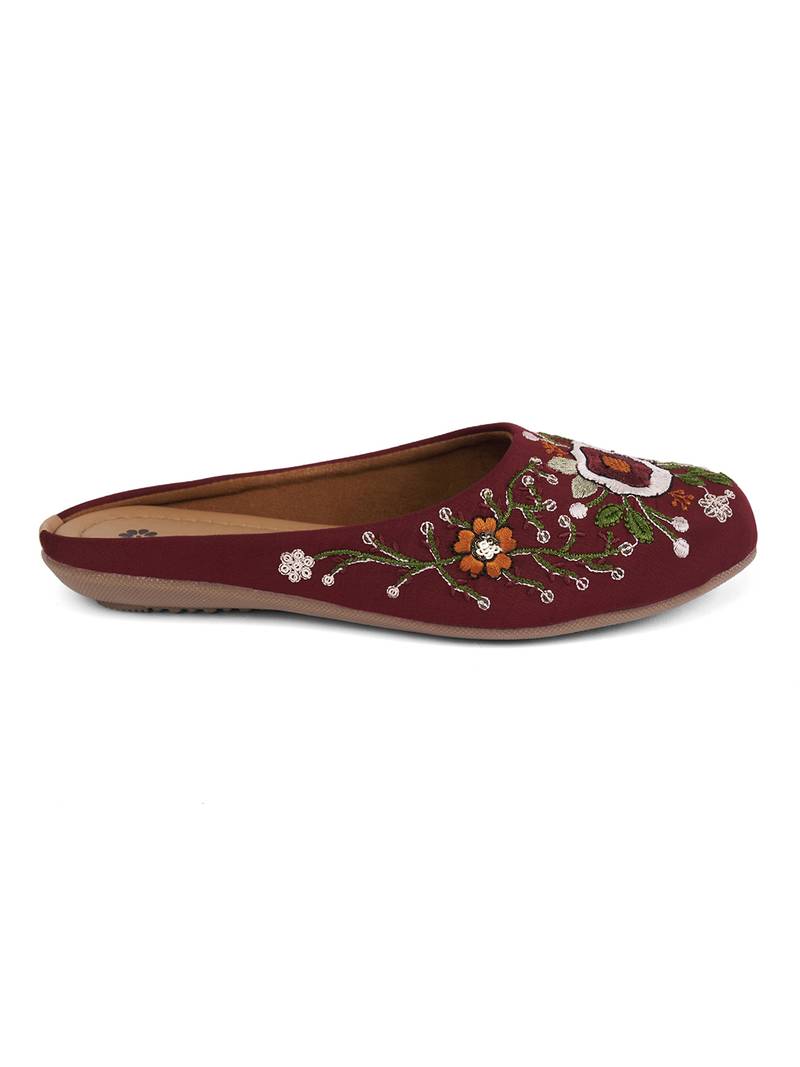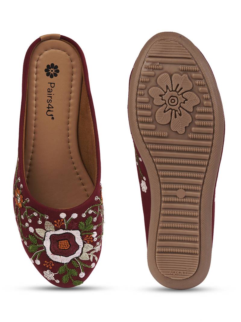 Women's maroon ethnic embroidered slip-on mojari mules | traditional juttis for casual & festive wear