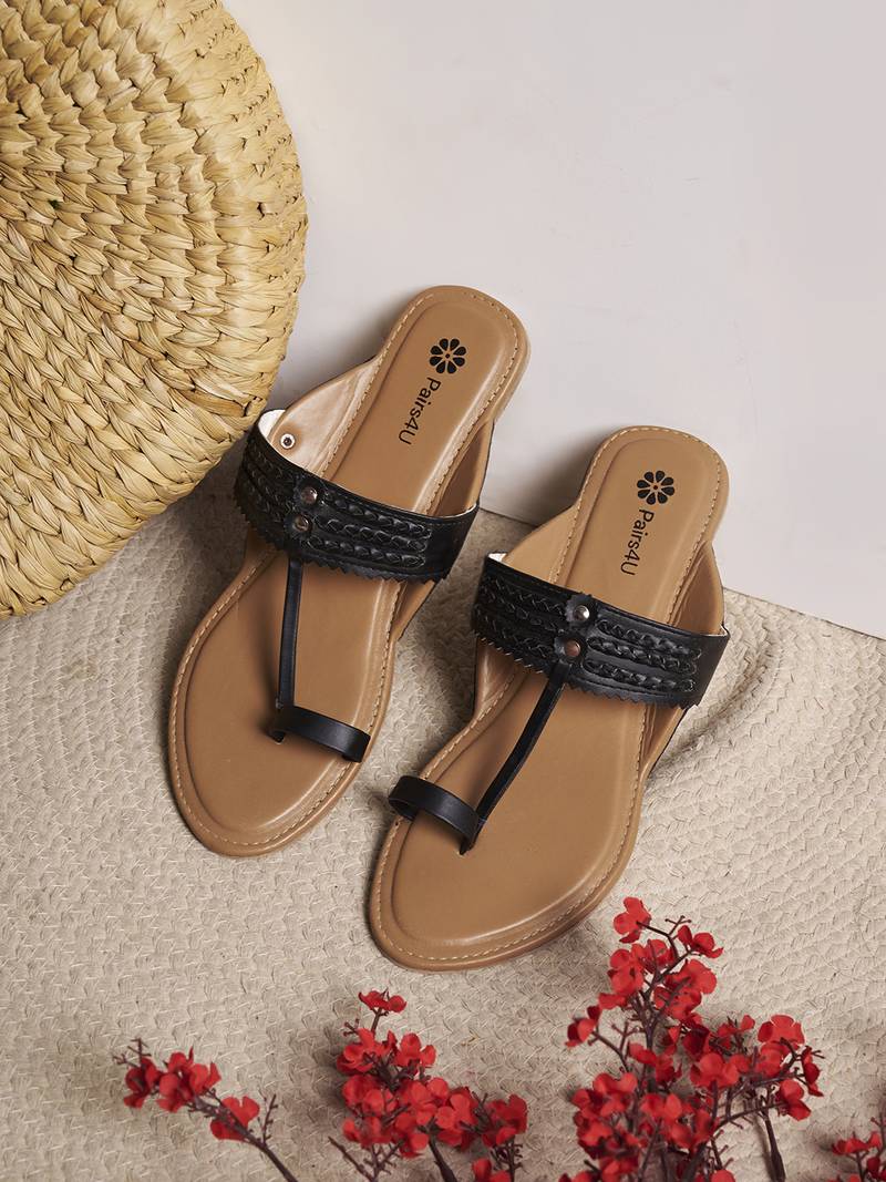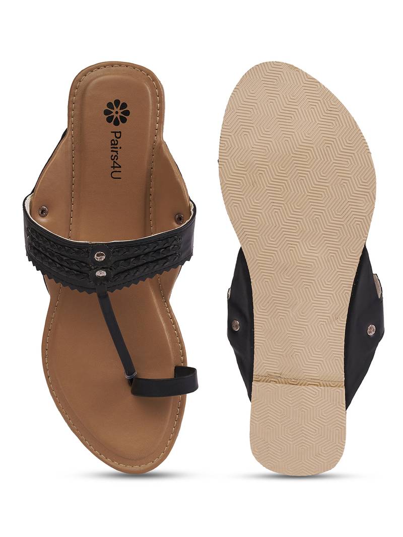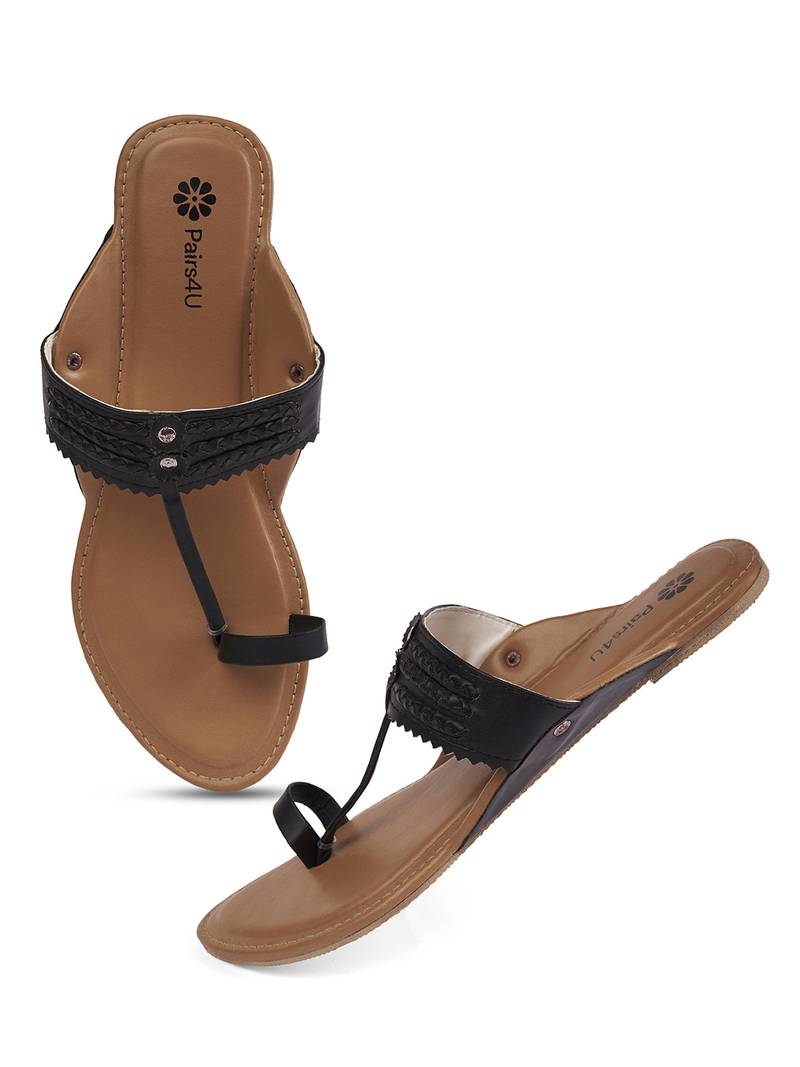 Discover The Perfect Blend Of Tradition And Modernity With Pairs4 U Women's Textured Open Toe Flats. These Beautifully Crafted Flats Feature A Black Canvas Upper Adorned With Exquisite Embroidery, Creating A Unique And Stylish Appearance That Elevates Any Ensemble. Ideal For Ethnic Wear, These Flats Are As Versatile As They Are Fashionable, Seamlessly Pairing With Both Traditional And Contemporary Outfits. The Innovative Slip On Design, Combined With A Flexible Pvc Sole, Ensures Maximum Comfort And Ease Of Wear, Making These Flats Perfect For Long Days And Festive Occasions Alike. Whether You're Attending A Family Gathering, Heading To A Casual Outing, Or Simply Enjoying A Day Out, The Pairs4 U Textured Open Toe Flats Offer Unmatched Style And Comfort. Invest In Quality And Elegance With These Lightweight, Durable Flats That Promise To Keep You Looking Chic And Feeling Great All Day Long.