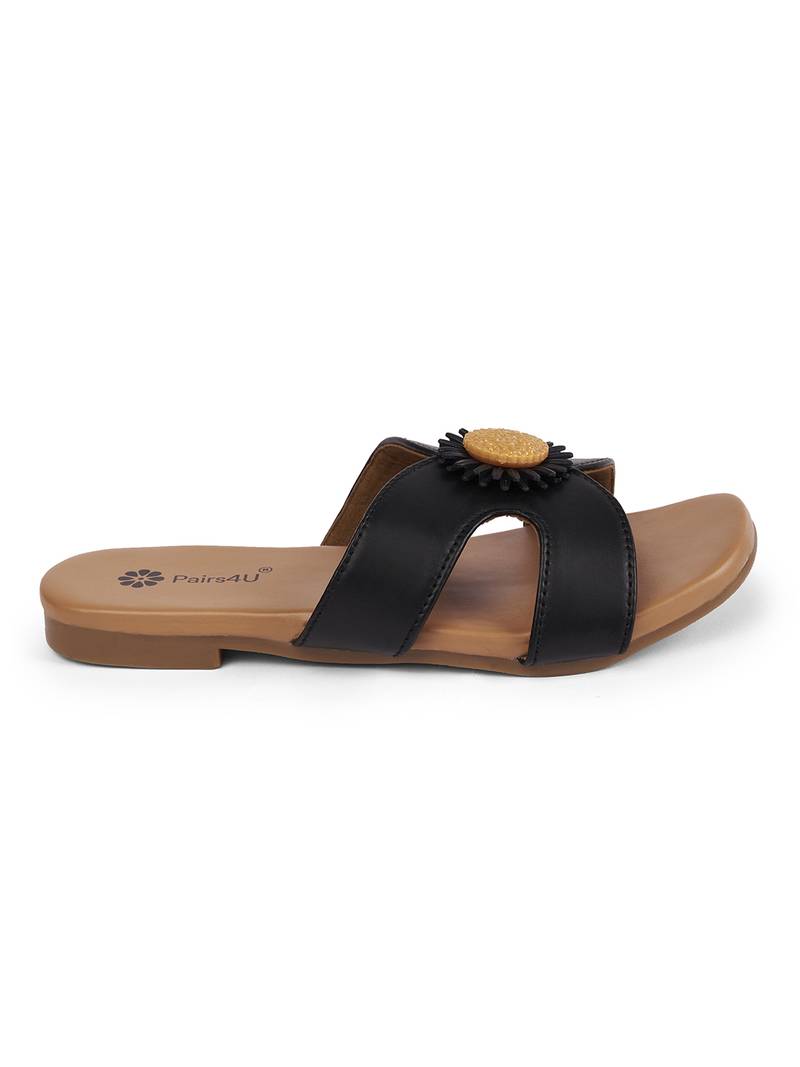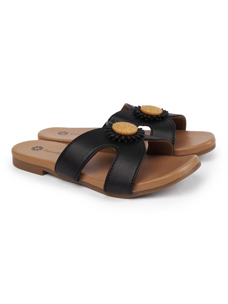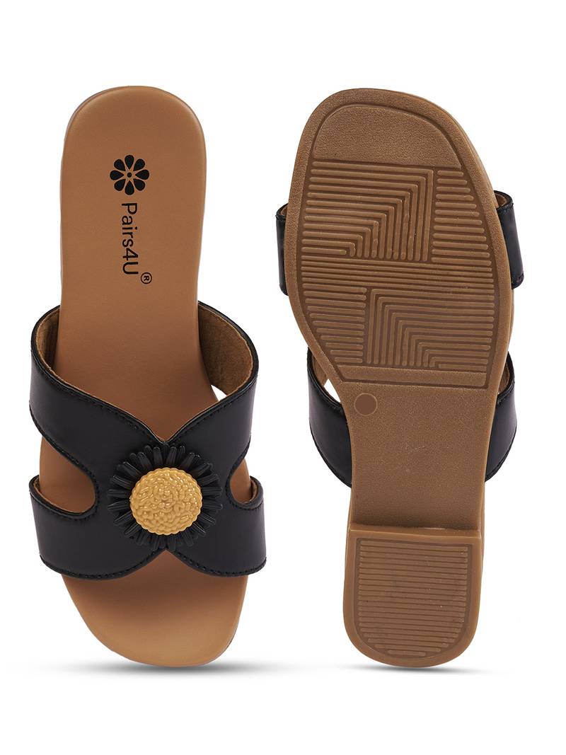 Elevate Your Shoe Collection With Pairs4 U Women's Textured Open Toe Flats, A Masterpiece Of Comfort And Style. Crafted For The Discerning Woman, These Flats Feature A Beautifully Embroidered Canvas Upper That Exudes Elegance And Charm. The Open Toe Design Ensures Breathability, While The Slip On Closure Offers Convenience For Your Busy Lifestyle. Whether You're Dressing Up For A Festive Occasion Or Going For A Casual Day Out, These Flats Are Your Go To Choice. The Pvc Sole Provides A Sturdy Base, Ensuring Both Durability And Lightweight Comfort. These Versatile Flats Seamlessly Complement Ethnic Attire, Making Them A Perfect Addition To Your Wardrobe. Available In Classic Black, They Are Easy To Pair With Any Outfit, Providing A Chic And Polished Look Every Time You Step Out. Experience The Blend Of Tradition And Modernity With Pairs4 U's Exquisite Collection, Designed To Keep You Stylish And Comfortable All Day Long.