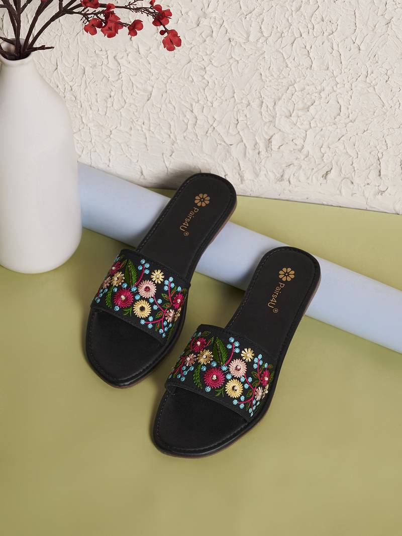 women's textured open toe flats multi canvas embroidered slip-on ethnic wear for women