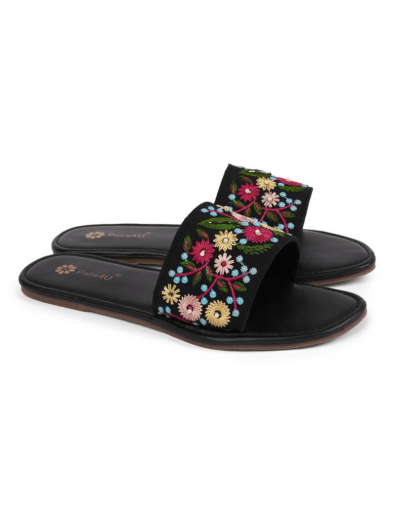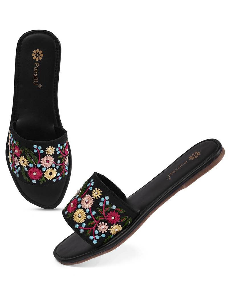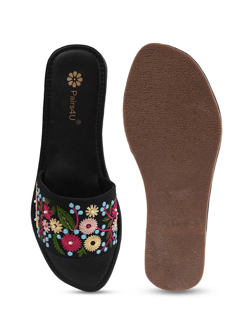 Elevate Your Footwear Collection With The Pairs4 U Women's Textured Open Toe Flats. These Flats Are Designed To Offer A Blend Of Comfort And Style, Making Them A Must Have For The Modern Woman. The Upper Part Is Made From Premium Canvas, Adorned With Exquisite Embroidery That Adds A Touch Of Elegance To Any Outfit. The Slip On Closure Ensures An Easy Fit While Maintaining The Traditional Charm Of Ethnic Wear.