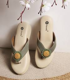 Women textured open toe platform wedges heels | ethnic canvas slip-on | green heels for parties & weddings
