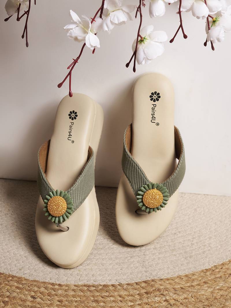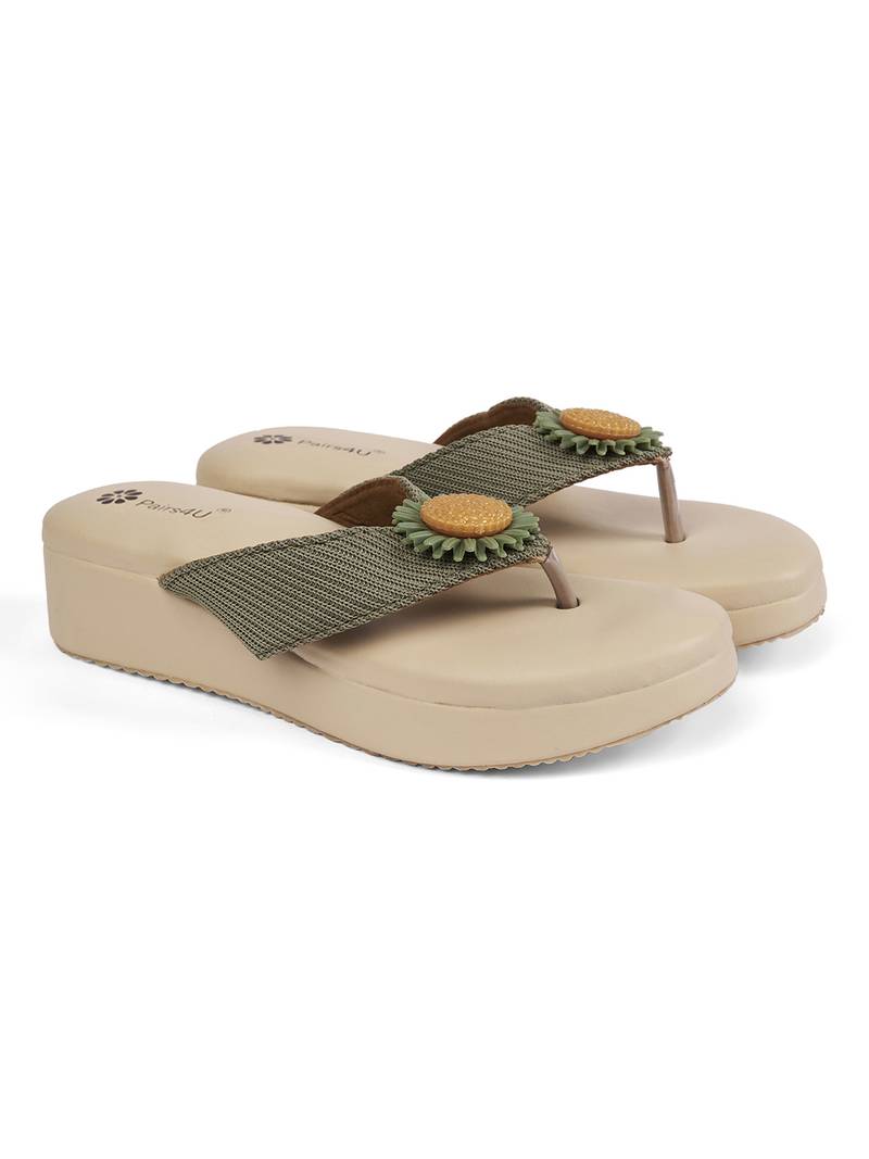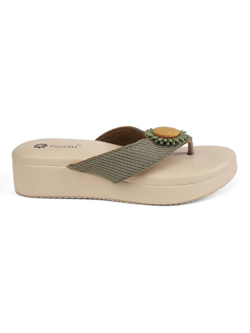 Step Into Elegance And Comfort With The Pairs4 U Women Textured Open Toe Platform Wedges Heels. These Stunning Green Wedges Are Perfect For Elevating Your Ethnic Wear With Their Unique Canvas Upper And Sleek Platform Design. The Open Toe Style Allows For Breathability, While The Slip On Closure Offers Convenience For Busy Days Or Quick Outfit Changes. Built With A Durable Pvc Sole, These Wedges Provide Excellent Stability And Shock Absorption, Ensuring You Feel As Good As You Look All Day Long.