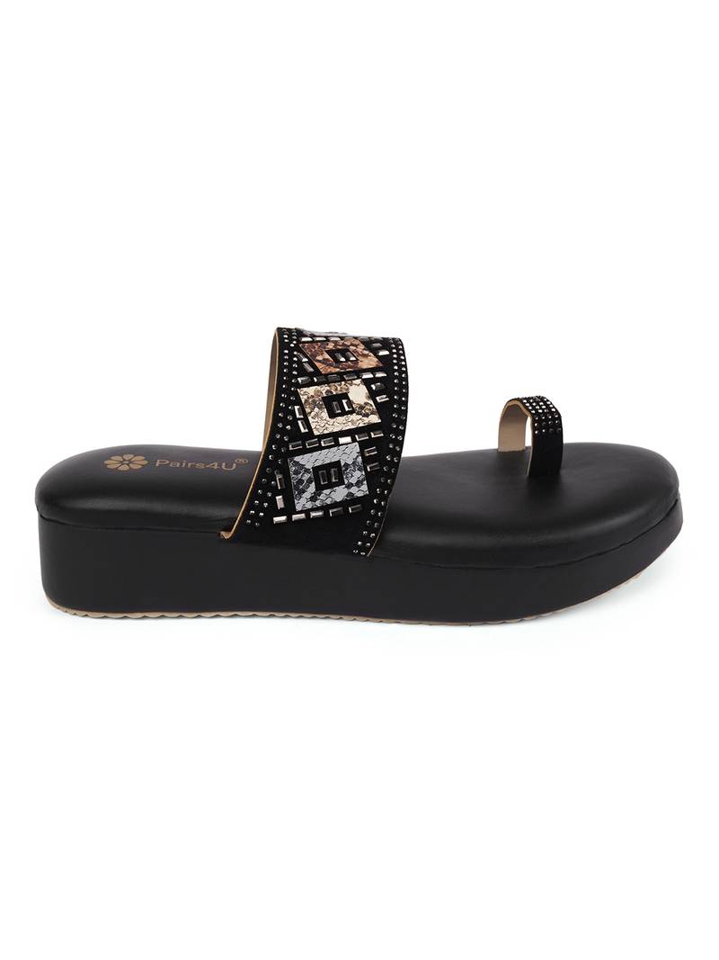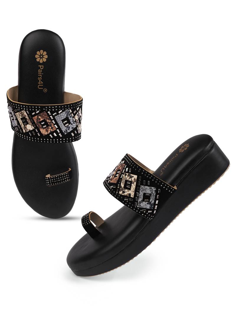 | Product Description | Step Into Elegance With The Pairs4 U Women Textured Open Toe Platform Wedges Heels. These Stunning Black Wedges Are Crafted With A Luxurious Upper, Featuring A Stylish Open Toe Design That Exudes Sophistication. Perfect For Ethnic Wear, They Add A Contemporary Twist To Traditional Outfits, Making Them An Essential Addition To Your Footwear Collection. The Platform Is Engineered With A Resilient Pvc Sole That Not Only Enhances Comfort But Also Offers Exceptional Stability With Every Step. Whether You're Attending A Festive Event Or A Wedding, These Wedges Ensure You Look And Feel Your Best. The Slip On Style Provides The Convenience And Ease You've Been Looking For, Making Them A Practical Choice For Busy Days Without Sacrificing Elegance. Designed To Offer A Perfect Blend Of Style And Functionality, These Wedges Are Lightweight, Ensuring You Can Move With Confidence. Their Durability Ensures They Remain A Staple In Your Wardrobe For Seasons To Come. Elevate Your Ethnic Wear With These Versatile Wedges, Pairing Them Seamlessly With Sarees, Lehengas, Or Even Modern Fusion Outfits. Choose The Pairs4 U Women Textured Open Toe Platform Wedges Heels For A Chic And Comfortable Footwear Option That Promises To Enhance Your Style Effortlessly. |