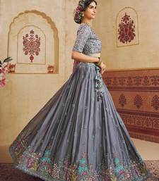 Grey silk sequins embroidery semi stitched lehenga choli dupatta